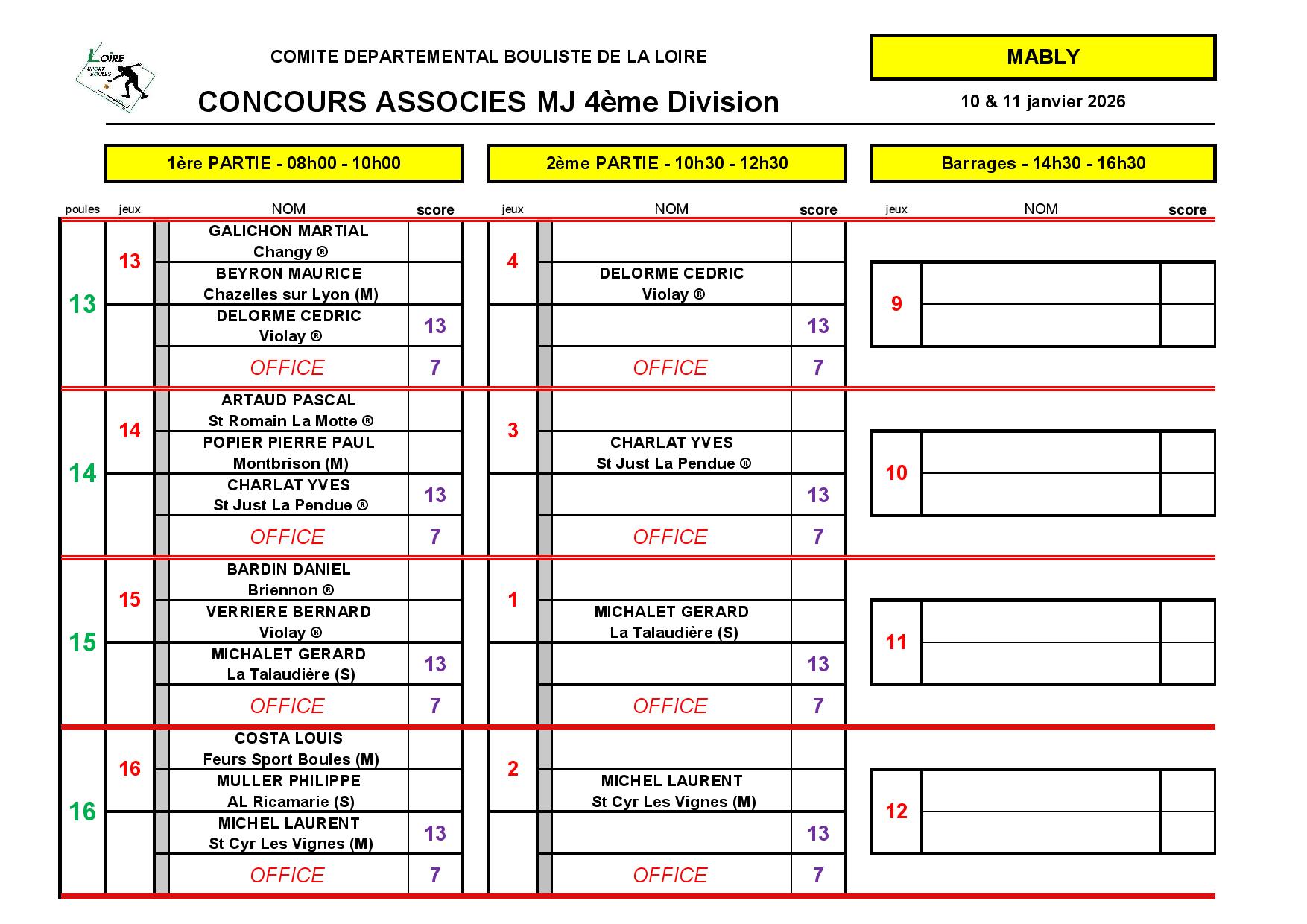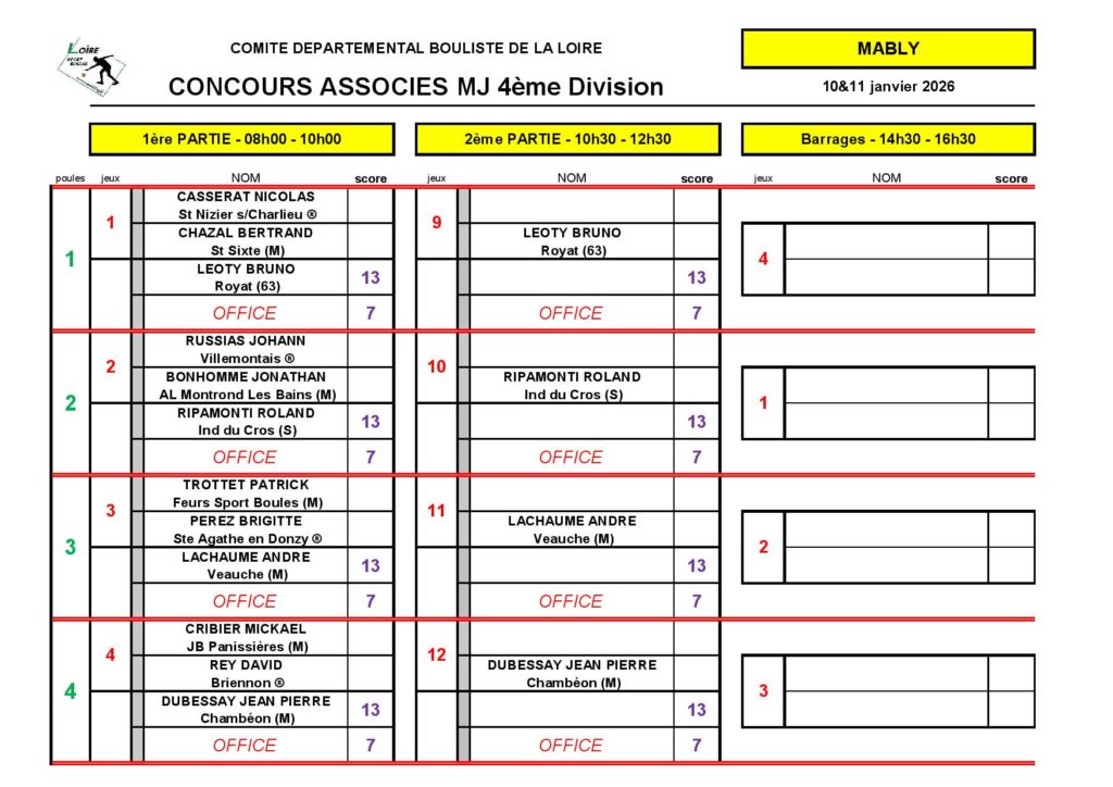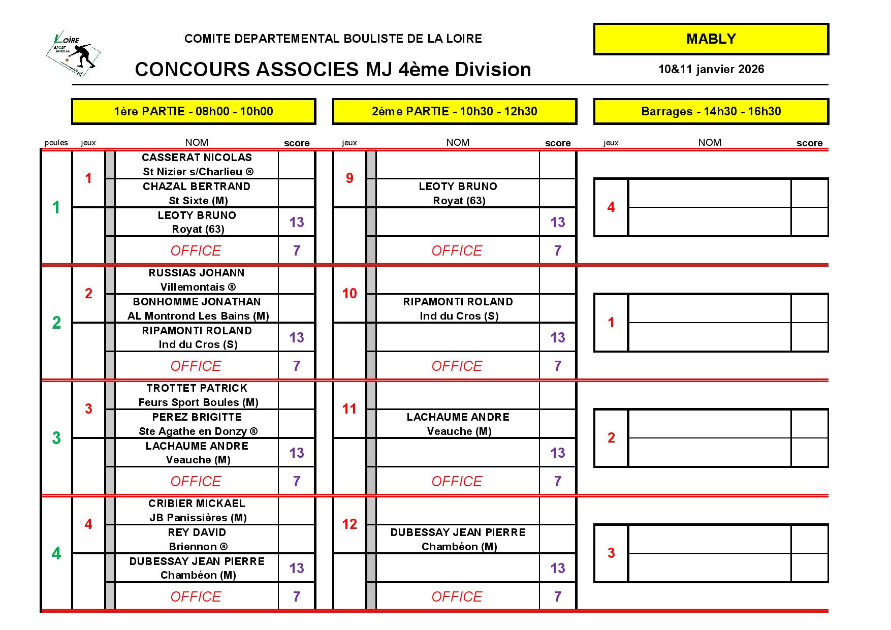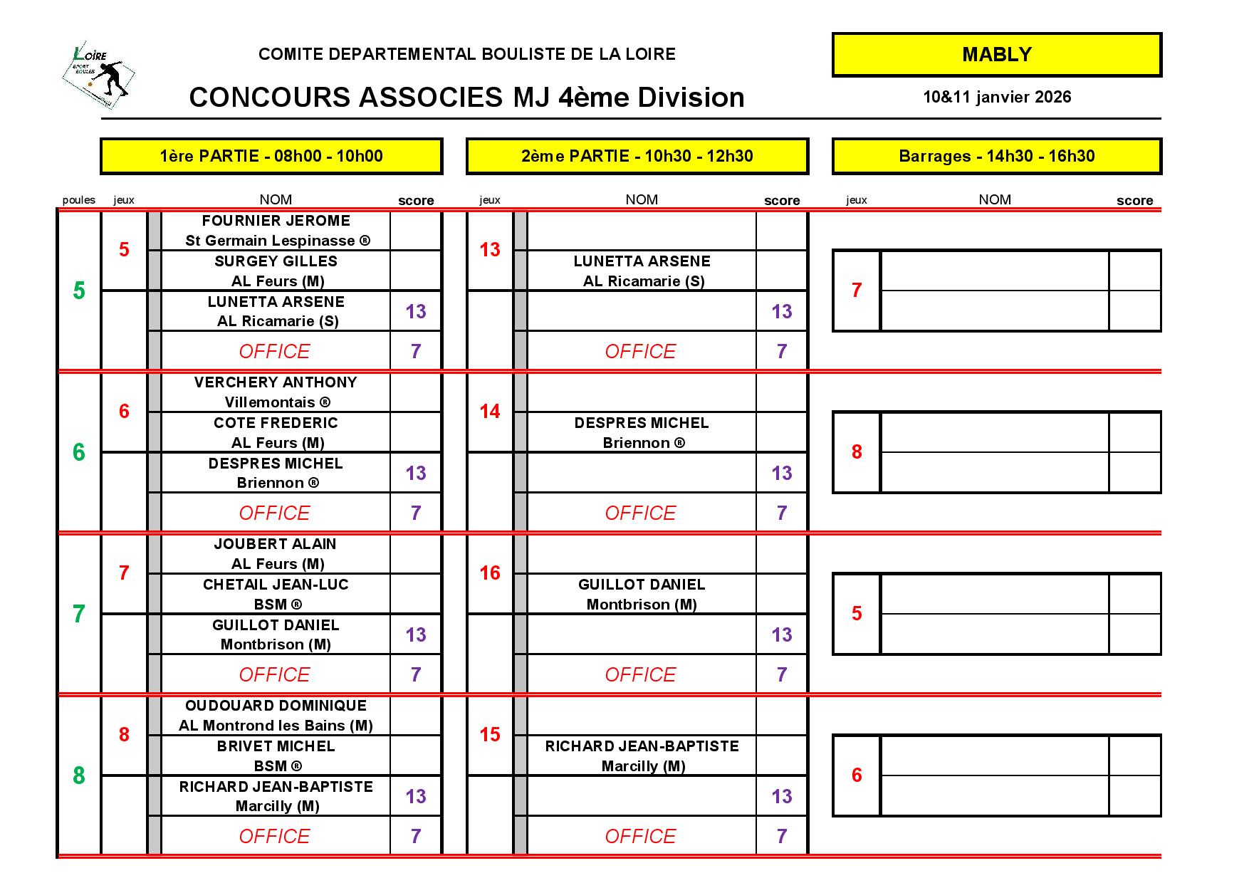 Concours Associés Maîtres-Joueurs M4 du 10&11 Janvier 26 - Tirage