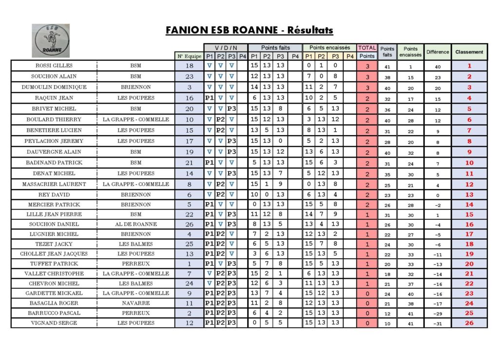 Résultat du FANION de ESB ROANNE - 07 Février 2026